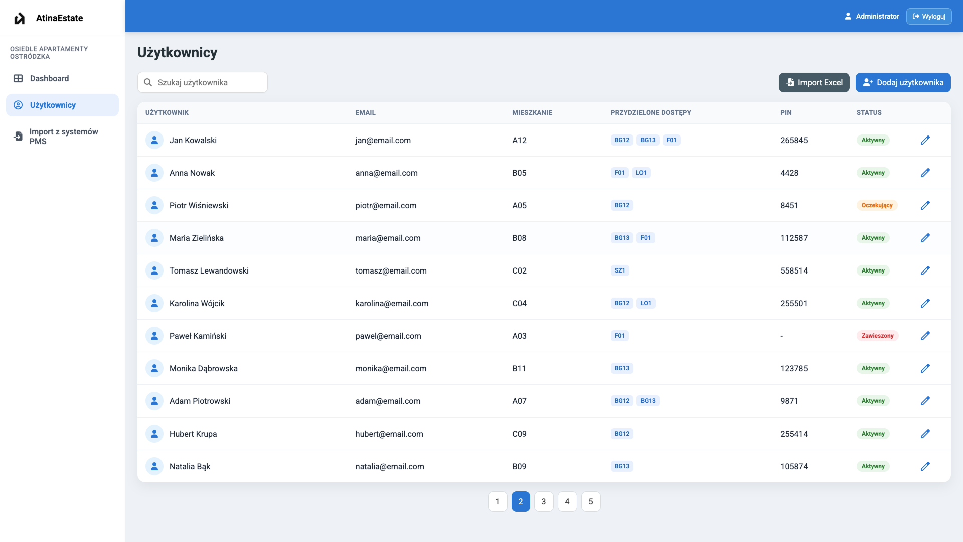 Prosty system dla administratora osiedla.